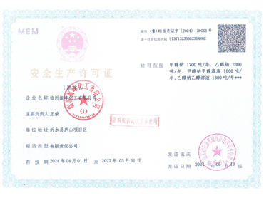 臨沂振峰化工有限公司安全生產許可證副本
